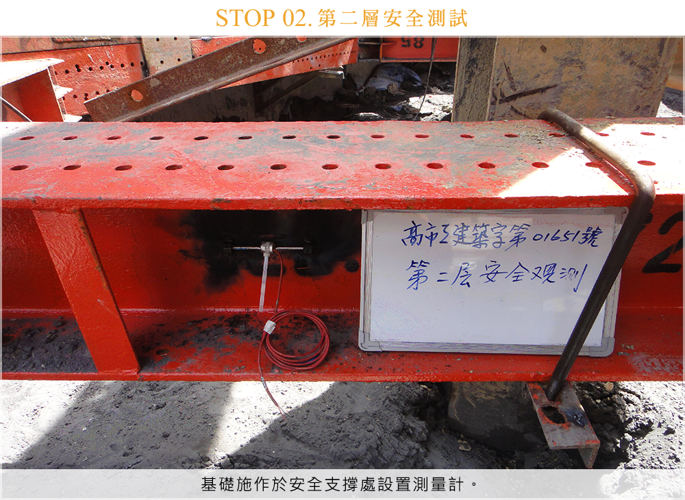 基礎施作於安全支撐處設置測量計。